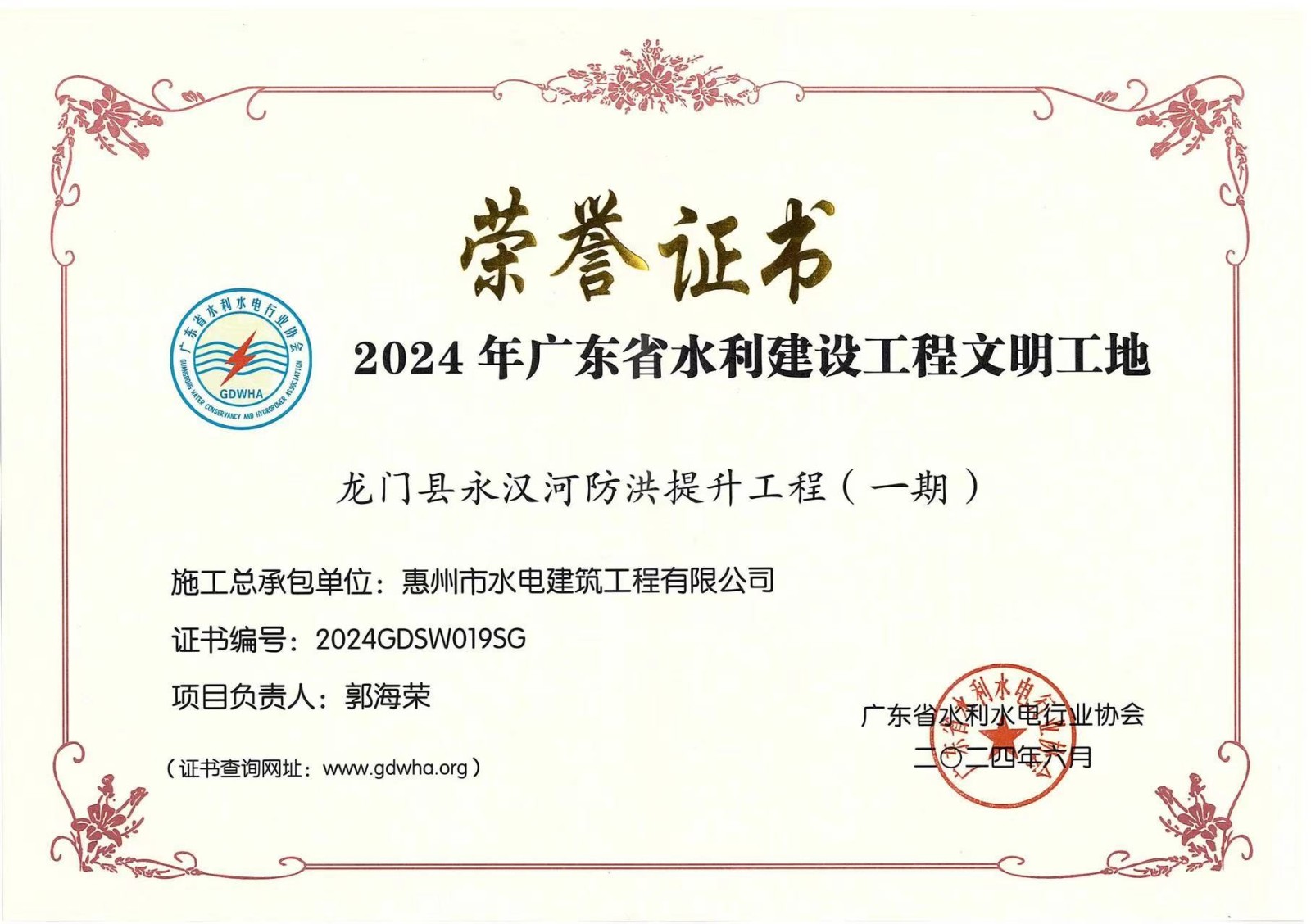 惠州市水電建筑工程有限公司成立于一九六四年四月,隸屬惠州市水務集團有限公司,是一家國有綜合性施工企業,主營水利水電工程、房屋建筑、市政工程等施工業務。公司擁有水利水電工程施工總承包一級、建筑工程施工總承包一級、市政公用工程施工總承包一級、公路工程施工總承包三級,公路路基、路面及建筑裝修裝飾專業承包二級,環保工程、機電安裝、河湖整治、輸變電工程專業承包三級等經營資質……